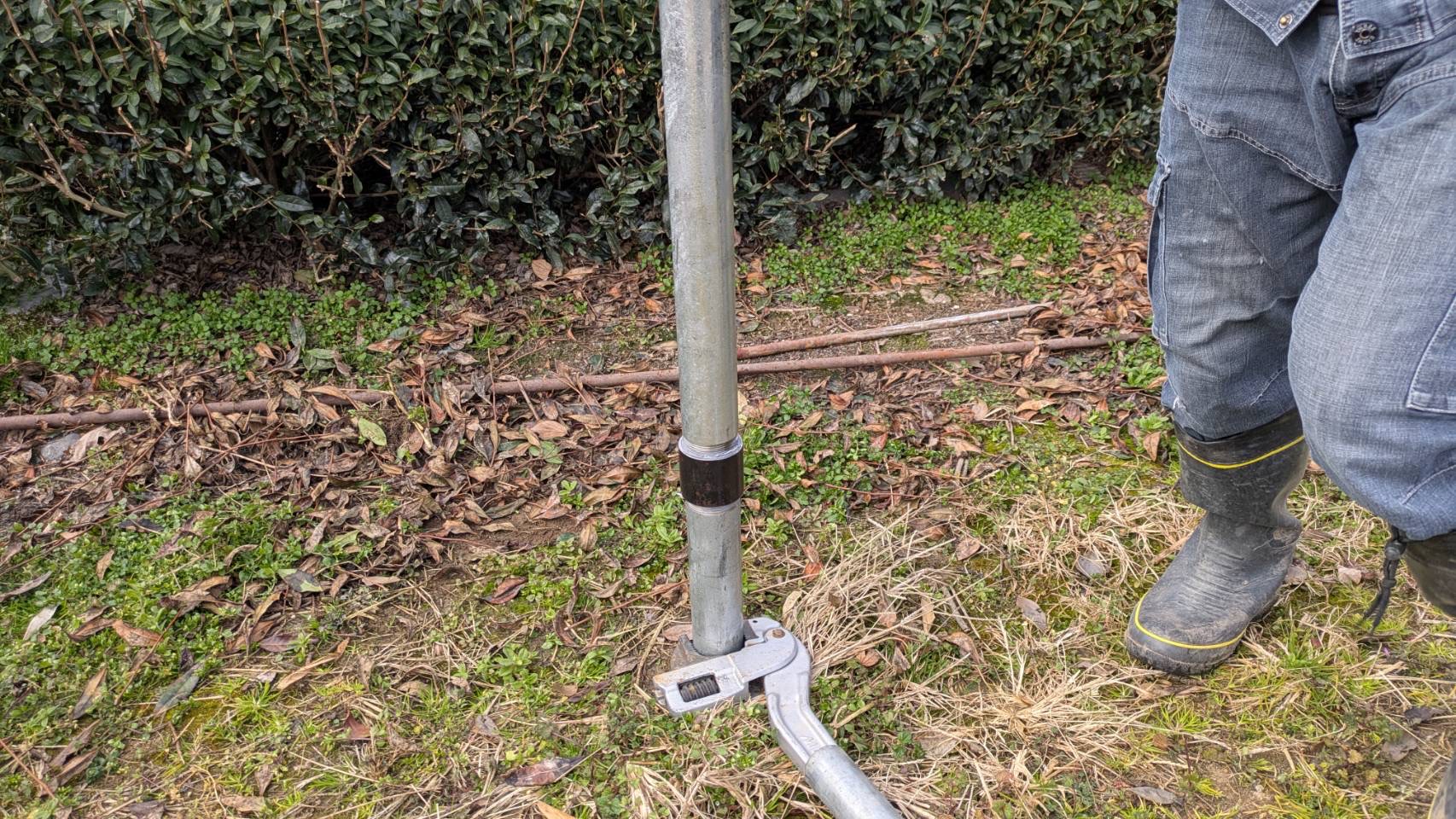 次々と管を継ぎ足します。空気漏れ厳禁!二人がかりでガチガチに締めます。
