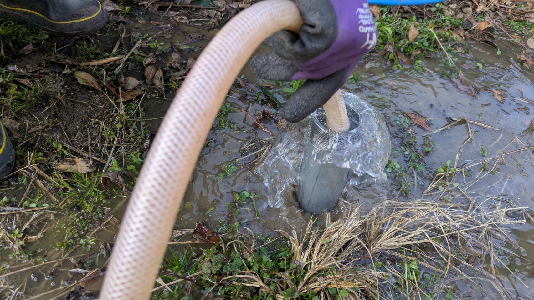 エンジンポンプを接続。冷た〜い水が途切れることなくドバドバ出てきます。