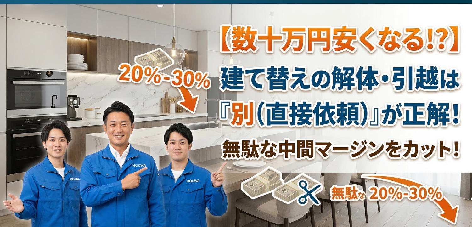 実は、ハウスメーカーから提示される解体工事や引越しのお見積りには、20%〜30%もの「紹介料(中間マージン)」が含まれていることが多くございます。